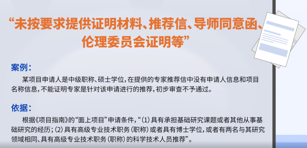1.未按要求提供证明材料、推荐信、导师同意函、伦理委员会证明等